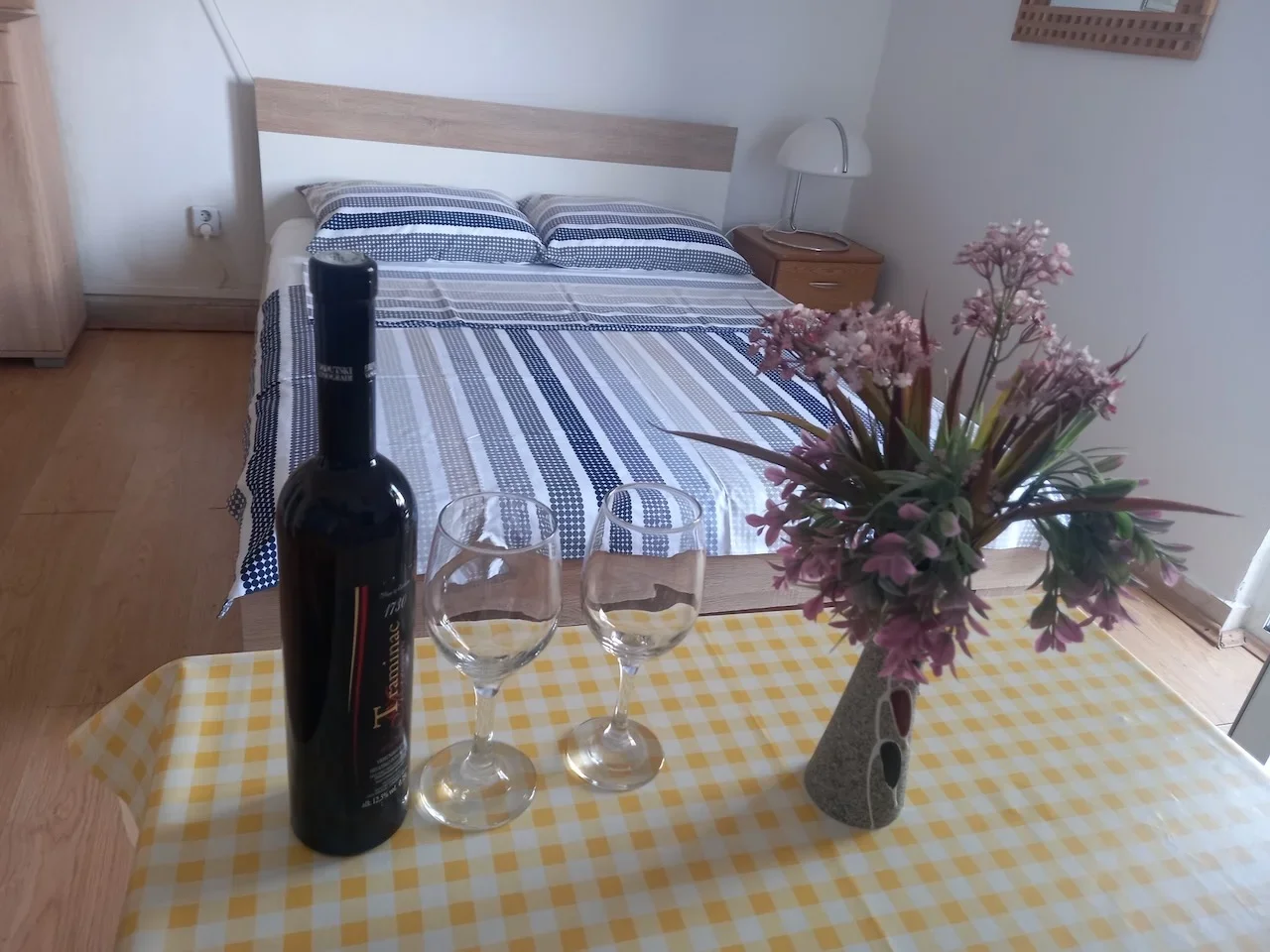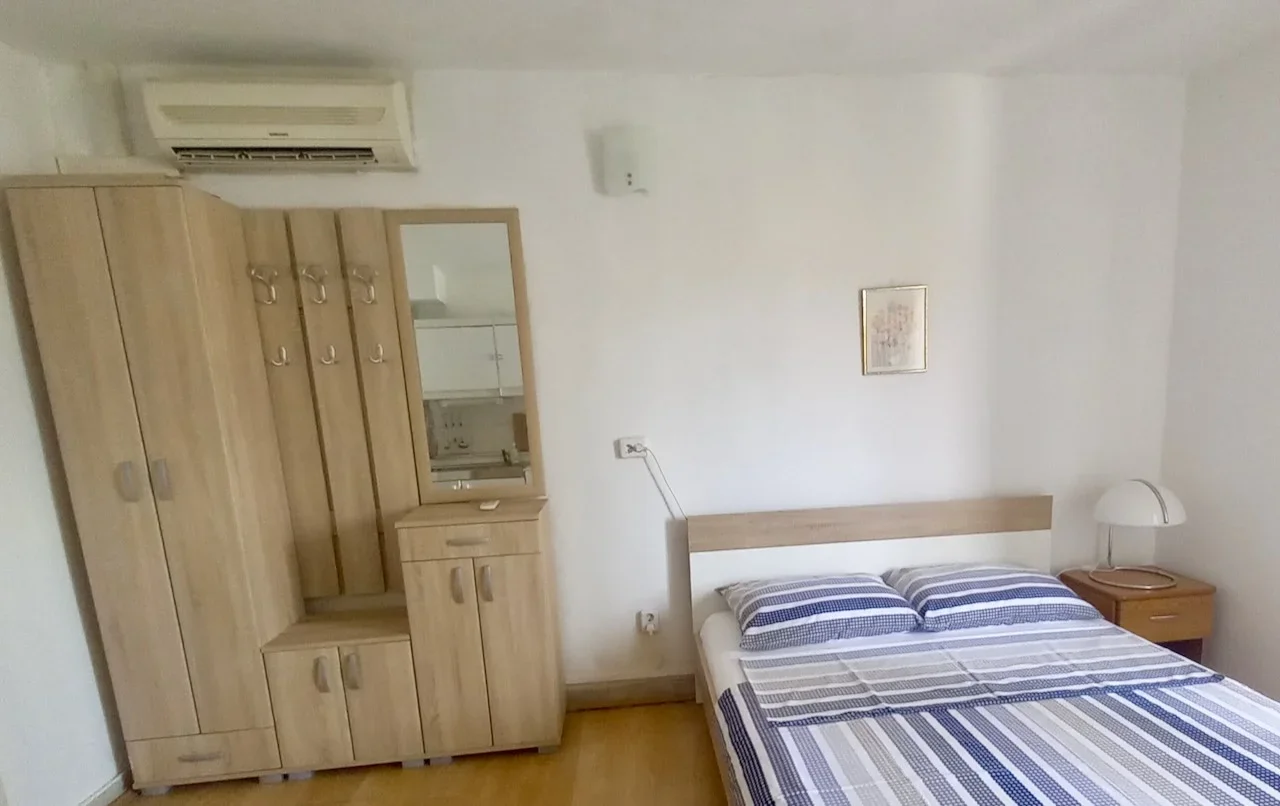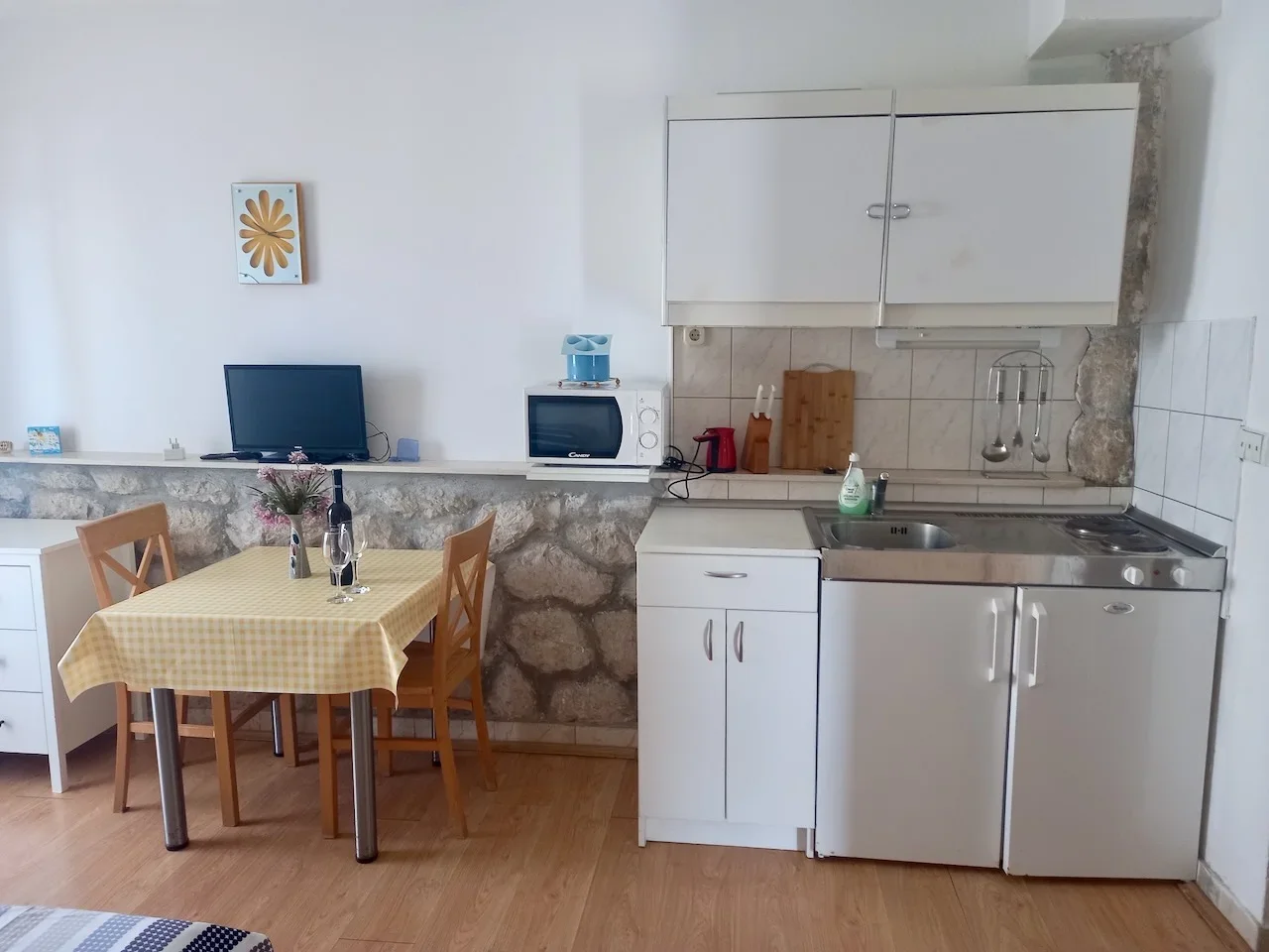 Studio je opremljen bračnim krevetom 160 × 200 cm, potpuno opremljenom kuhinjom i klima uređajem.